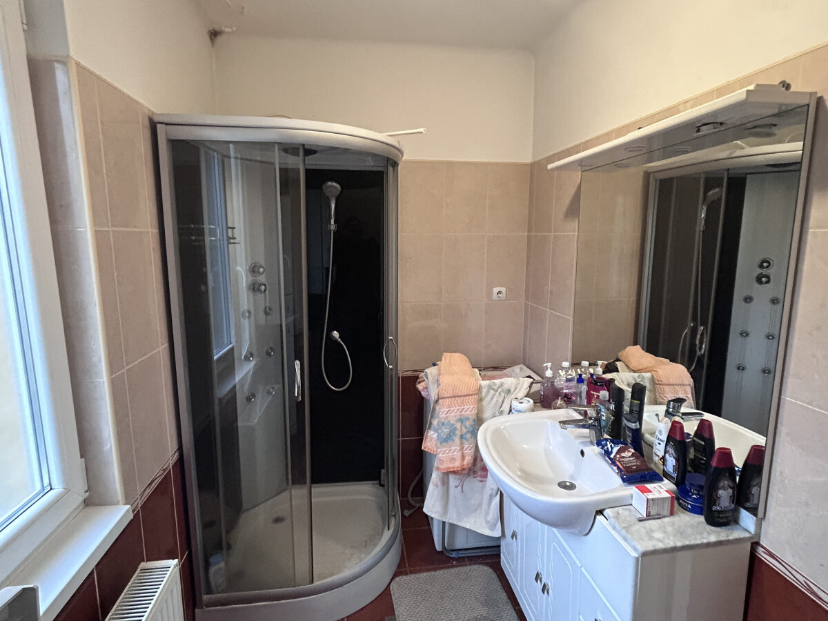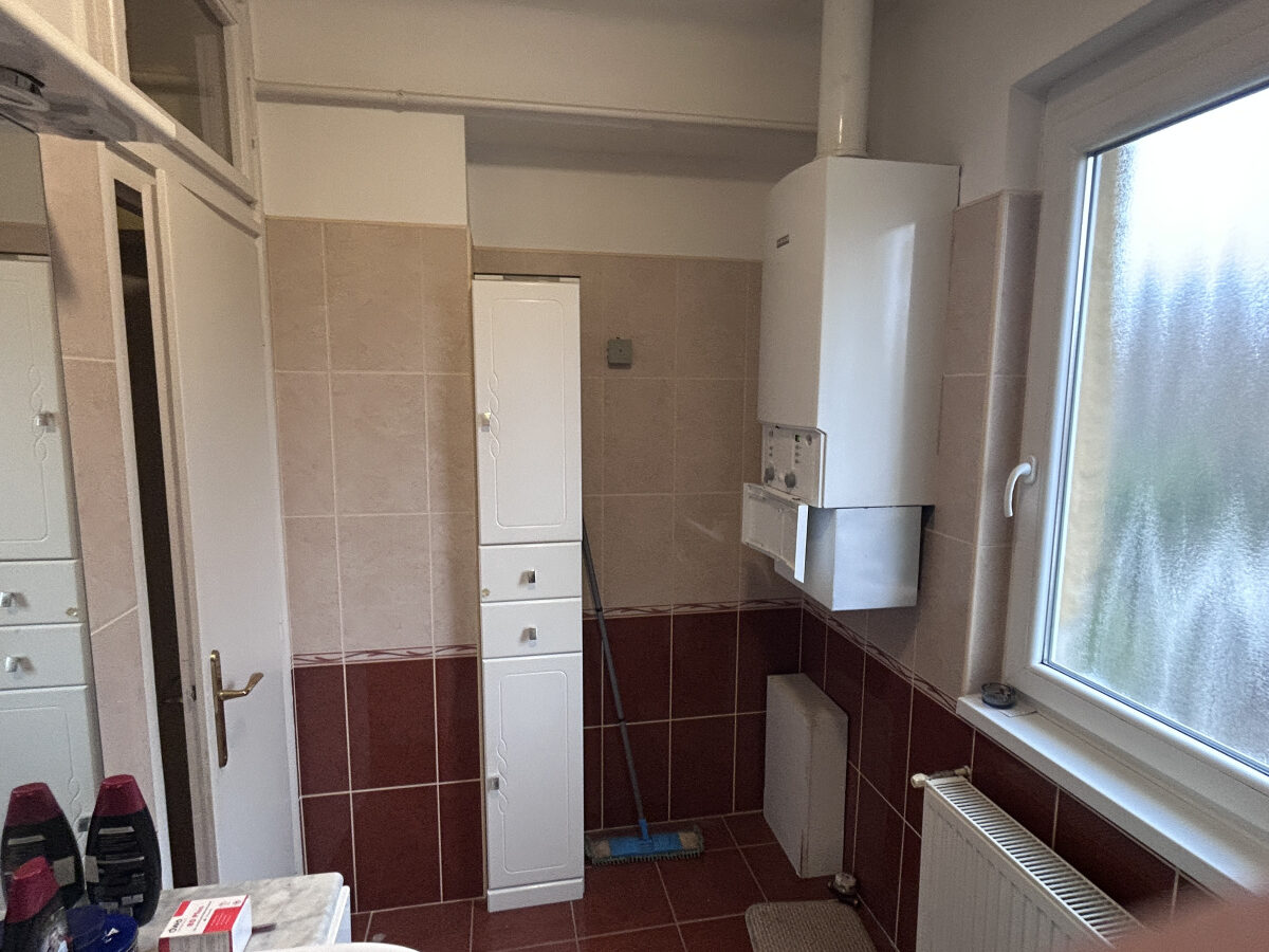 A tágas nappaliból udvari fekvésű hálószoba nyílik, a fürdőszoba külön helyiségben van a wc-től.