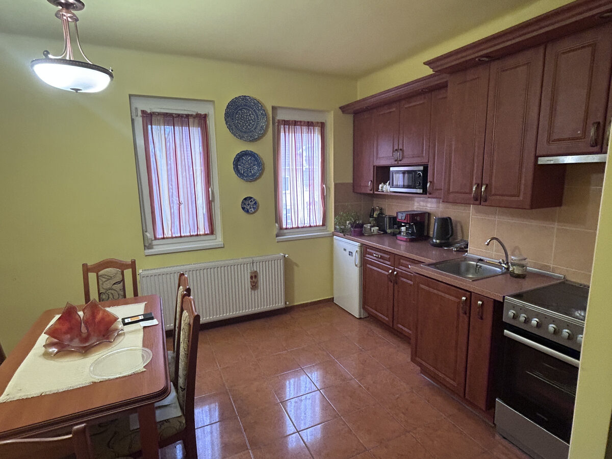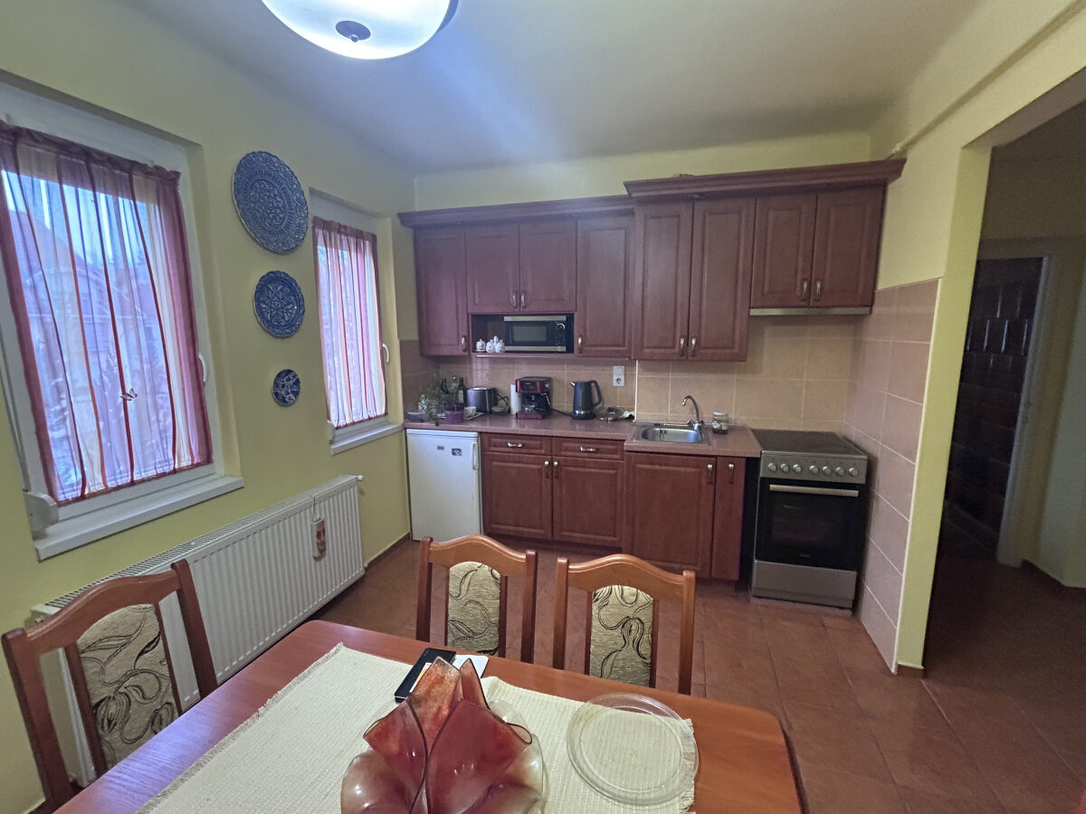 Talán a legkényelmesebb helyiség az az étkezős konyha, ahol kisebb és nagyobb családi rendezvényeken mindenki kényelmesen leülhet, bőséges a hely a baráti látogatásokra.